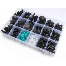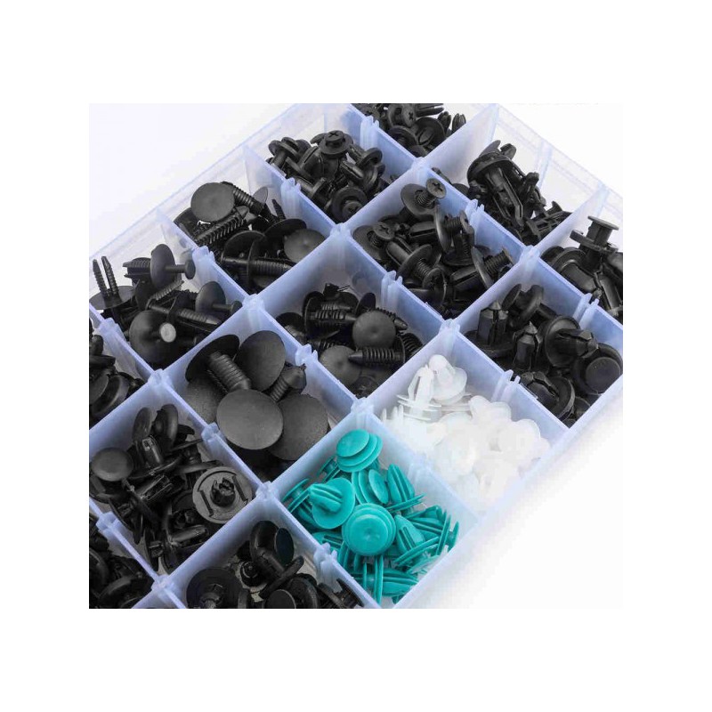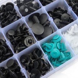 Zestaw uniwersalnych spinek / klipsów montażowych.