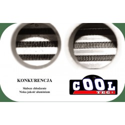COOL-TEC+ jest ulepszoną wersją rdzenia Bar&Plate. Posiada on ułożone naprzemiennie użebrowanie wewnętrzne, jednak jego stopień zagęszczenia jest dobrany tak, aby nie powodować zawirowań, i nie zmniejszać jego prześwitu. Dodatkowo ułożenie lamelek wymusza przepływ powietrza przez całą powierzchnię chłodzącą. Dzięki połączeniu tych elementów uzyskujemy bardzo dużą wydajność cieplną, przy zachowaniu niskiego współczynnika oporu i wysokiej przepustowości.