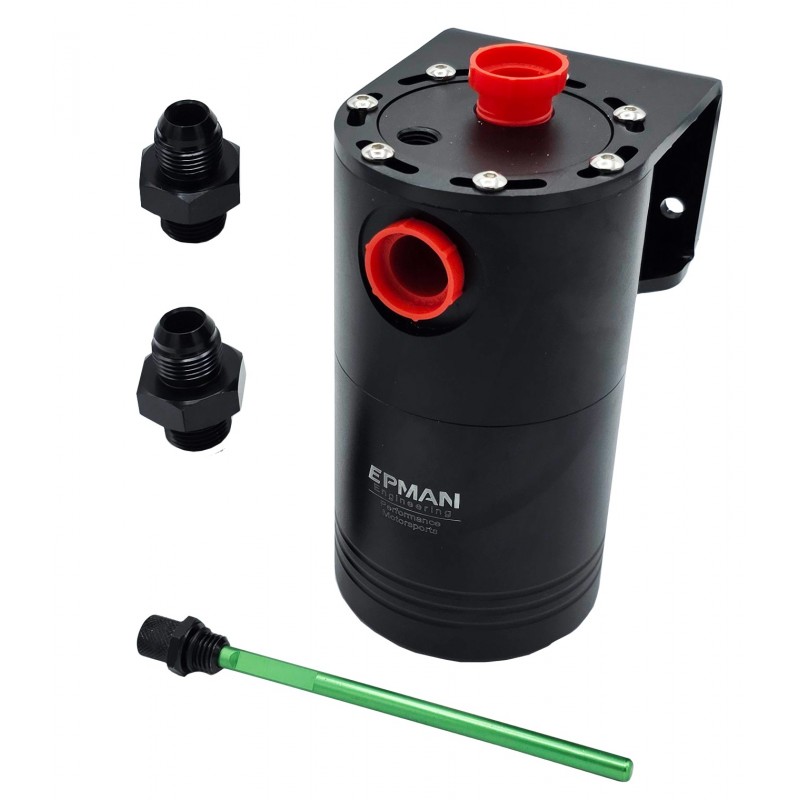 Wysokiej jakości uniwersalny zbiornik odmy olejowej (oil catch tank), zaprojektowany z myślą o skutecznej ochronie silnika oraz poprawie jego osiągów. Urządzenie odpowiada za skraplanie i separację oparów oleju, które w standardowym układzie przedostają się przez odmę do dolotu, a następnie trafiają do komór spalania.