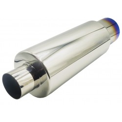 Wysokiej jakości sportowy tłumik końcowy wykonany ze stali nierdzewnej SS201 o grubości 1,5 mm. Konstrukcja całkowicie przelotowa, bez zwężeń, zapewnia swobodny przepływ spalin i charakterystyczne, sportowe brzmienie.