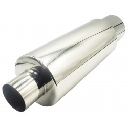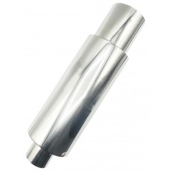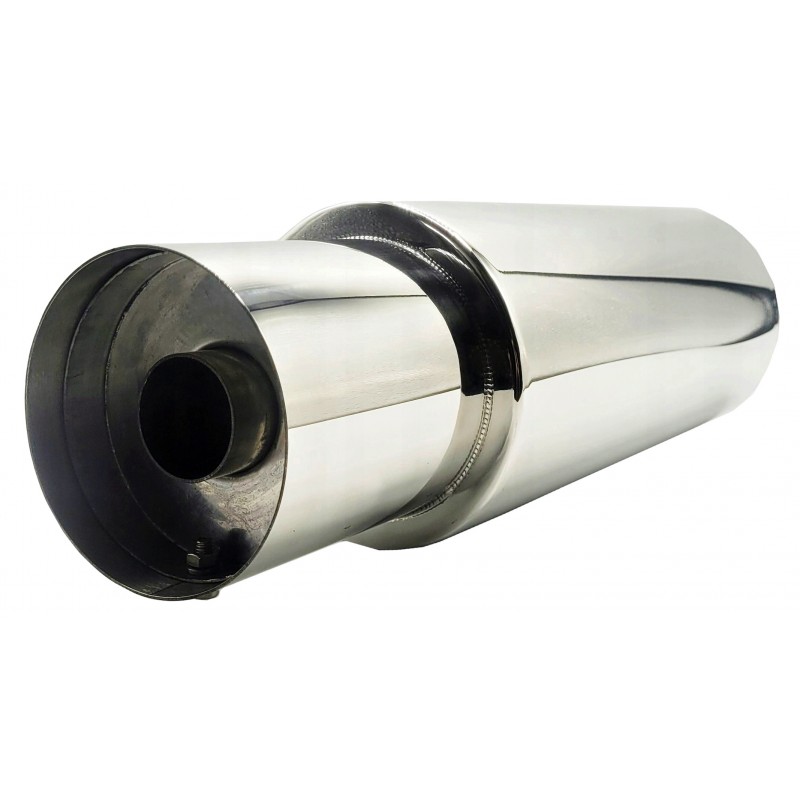 Sportowy tłumik końcowy wykonany ze stali nierdzewnej SS201 o grubości 1,5 mm. Konstrukcja całkowicie przelotowa zapewnia swobodny przepływ spalin i sportowe brzmienie.
