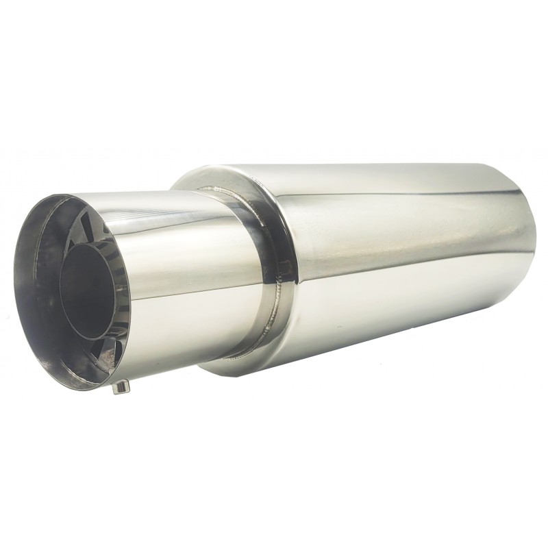 Wysokiej jakości tłumik końcowy o sportowym charakterze, wykonany z trwałej stali nierdzewnej SS201 o grubości 1,5 mm. Konstrukcja w pełni przelotowa gwarantuje swobodny przepływ spalin oraz charakterystyczne, dynamiczne brzmienie.