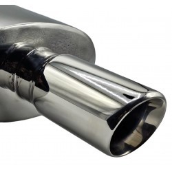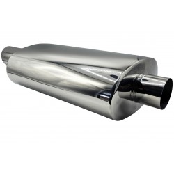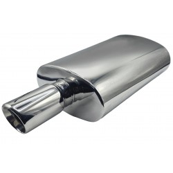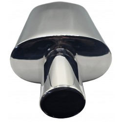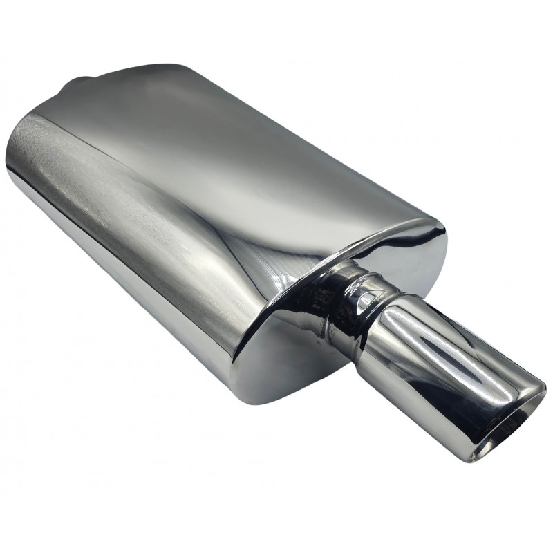 Wysokiej jakości przelotowy tłumik końcowy wykonany z wytrzymałej stali nierdzewnej SS201 o grubości 1,5 mm. W celu wyciszenia zastosowano specjalistyczną wełnę dźwiękochłonną, która nie zawiera azbestu ani innych szkodliwych substancji, co zapewnia bezpieczeństwo i skuteczne tłumienie hałasu.