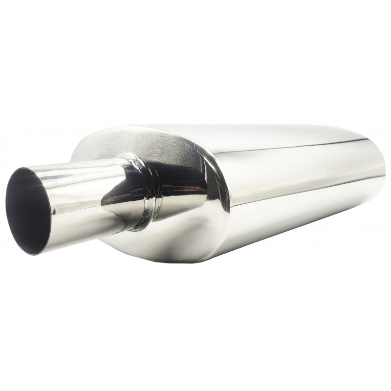 Wysokiej jakości tłumik środkowy o całkowicie przelotowej konstrukcji, wykonany z trwałej stali nierdzewnej SS201 o grubości 1,5 mm. Brak zwężeń w układzie gwarantuje swobodny przepływ spalin oraz dynamiczne, sportowe brzmienie.