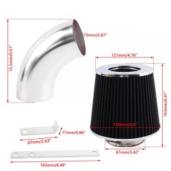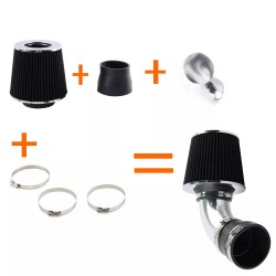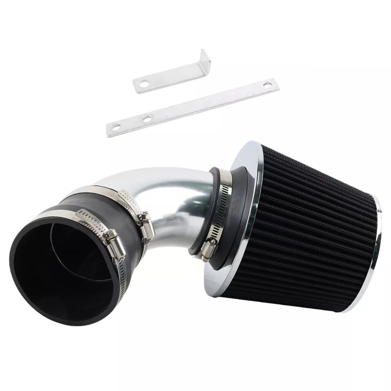 Zestaw posiada wszystkie niezbędne akcesoria do dla kompatybilnych samochodów m.in: wysokiej jakości kolanko aluminiowe, filtr 76mm wielokrotnego użytku, rurę silikonową z 4-krotnym oplotem, opaski ze stali nierdzewnej.