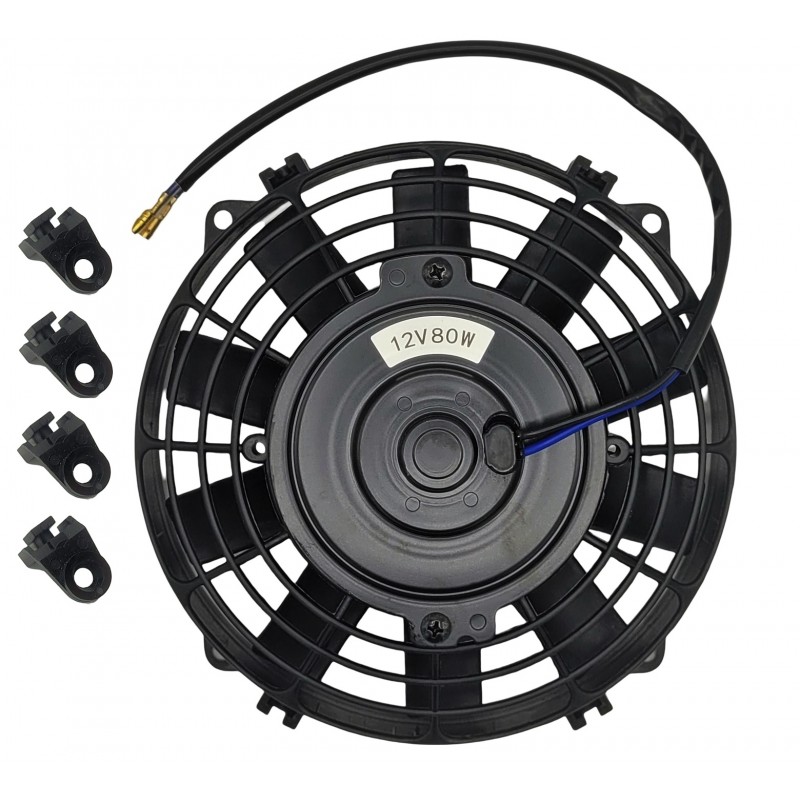 Płaski wentylator o średnicy 8 cali (190 mm), zaprojektowany do montażu za chłodnicą jako wentylator ssący. Dzięki kompaktowej konstrukcji i wysokiej wydajności, jest idealnym rozwiązaniem do systemów chłodzenia w pojazdach, w tym samochodach osobowych, terenowych oraz innych aplikacjach wymagających efektywnego chłodzenia.