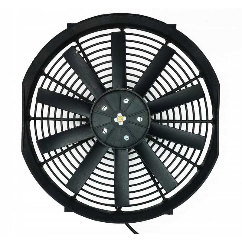 Wentylator o średnicy 14 cali, zaprojektowany do montażu za chłodnicą jako wentylator ssący. Dzięki wysokiej wydajności, jest idealnym rozwiązaniem do zastosowań w układach chłodzenia silników, intercoolerach, chłodnicach oleju, klimatyzacji oraz innych systemach wymagających efektywnego przepływu powietrza.