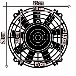 Wydajny wentylator o średnicy 9 cali (230 mm), przeznaczony do montażu przed chłodnicą jako wentylator tłoczący. Dzięki skręcanym łopatkom zapewnia maksymalny przepływ powietrza, co przekłada się na skuteczne chłodzenie układów w samochodach, motocyklach i innych pojazdach.