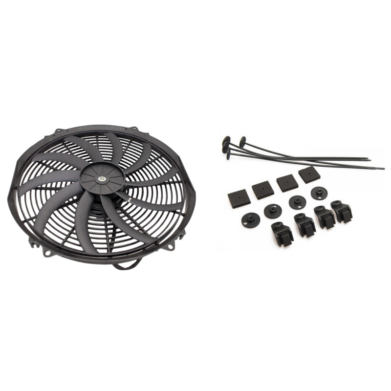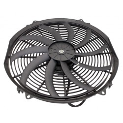 Płaski wentylator o średnicy 16 cali (385 mm), zaprojektowany do montażu przed chłodnicą jako wentylator tłoczący. Dzięki dużej wydajności i skręcanym łopatkom, zapewnia maksymalną efektywność chłodzenia, idealnie nadając się do zastosowań w systemach chłodzenia, takich jak chłodnice, intercoolery, klimatyzacja czy chłodnice oleju.